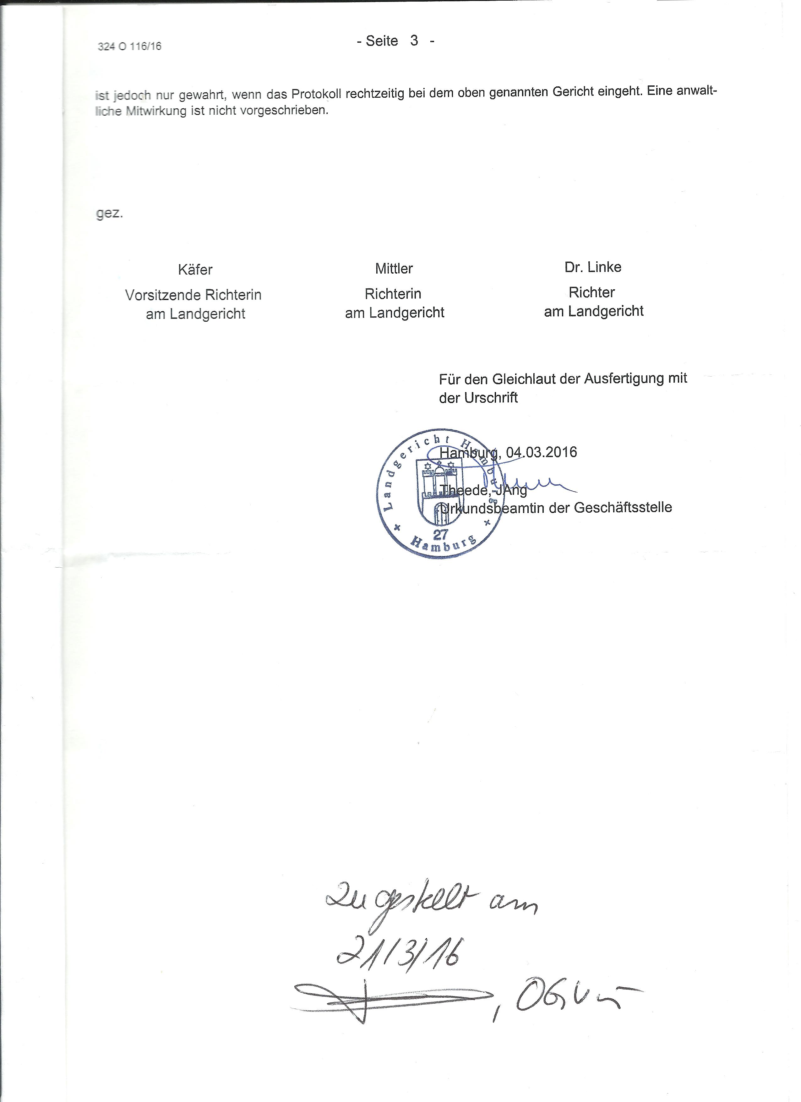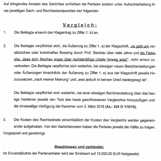 Meinen Kommentar zum Vergleich verfasse ich am Montag.